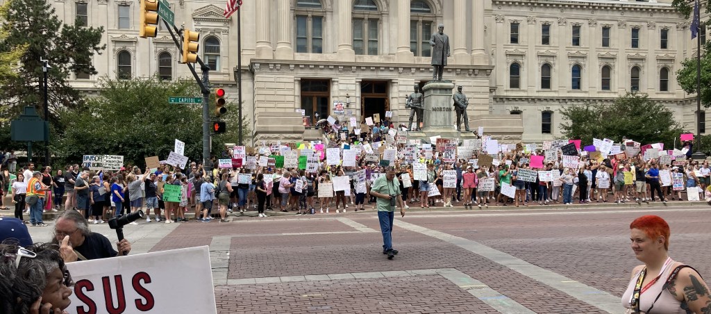 Crowds wrapped around the Indiana Statehouse Monday morning, July 25th, mostly in opposition to the proposed abortion bans in Indiana Senate Bill 1. That bill was authored by Susan Glick, the Republican State Senator from District 13 in northern Indiana.